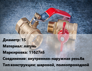 Кран металлический 15 латунь 11б27п5 внутренняя-наружная резьба шаровой, полнопроходной, шт цена от 356.25 сом / шт, где купить, условия доставки в Бишкеке и Чуйской области