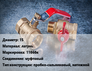 Кран металлический 15 латунь 11б6бк муфтовый пробко-сальниковый, натяжной