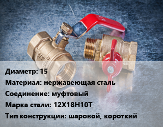 Кран металлический 15 нержавеющая сталь муфтовый Сталь: 12Х18Н10Т шаровой, короткий