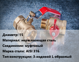 Кран металлический 15 нержавеющая сталь муфтовый Сталь: AISI 316 3-ходовой L образный