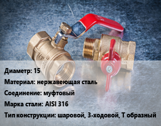 Кран металлический 15 нержавеющая сталь муфтовый Сталь: AISI 316 шаровой, 3-ходовой, Т образный, шт цена от 1 485 сом / шт, где купить, условия доставки в Бишкеке и Чуйской области