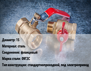 Кран металлический 15 сталь фланцевый Сталь: 09Г2С стандартнопроходной, под электропривод