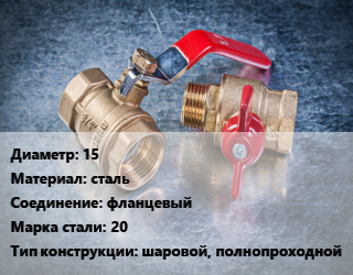 Кран металлический 15 сталь фланцевый Сталь: 20 шаровой, полнопроходной
