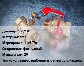 Кран металлический 150/100 сталь 11с967п фланцевый Сталь: 20 разборный, с электроприводом