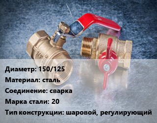 Кран металлический 150/125 сталь сварка Сталь: 20 шаровой, регулирующий