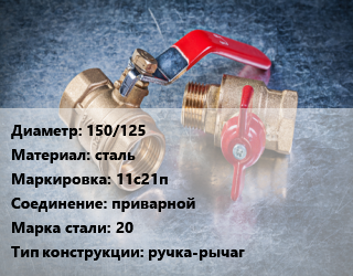 Кран металлический 150/125 сталь 11с21п приварной Сталь: 20 ручка-рычаг