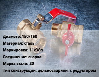 Кран металлический 150/150 сталь 11с38п сварка Сталь: 20 цельносварной, с редуктором
