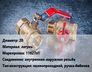 Кран металлический 20 латунь 11б27п1 внутренняя-наружная резьба полнопроходной, ручка-бабочка, БАЗ, шт цена от 301.5 сом / шт, где купить, условия доставки в Бишкеке и Чуйской области