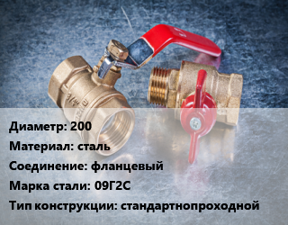 Кран металлический 200 сталь фланцевый Сталь: 09Г2С стандартнопроходной