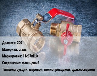 Кран металлический 200 сталь 11с67пЦФ фланцевый шаровой, полнопроходной, цельносварной