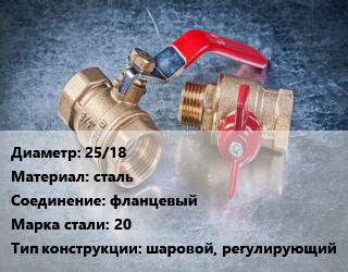 Кран металлический 25/18 сталь фланцевый Сталь: 20 шаровой, регулирующий