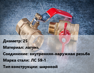Кран металлический 25 латунь внутренняя-наружная резьба Сталь: ЛС 59-1 шаровой