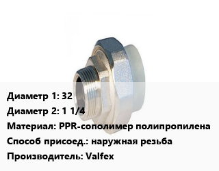 Американка 32х1 1/4 PPR-сополимер полипропилена наружная резьба Valfex