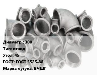 Отвод чугунный 300 отвод Угол:45 ГОСТ 5525-88 Марка: ВЧШГ