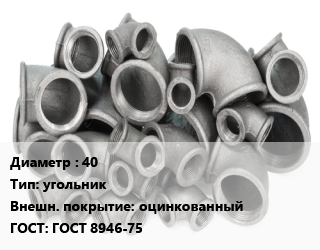 Отвод чугунный 40 угольник оцинкованный ГОСТ 8946-75
