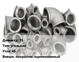 Отвод чугунный 15 угольник Угол:45 оцинкованный, внутренняя резьба, шт цена от 55.28 сом / шт, где купить, условия доставки в Бишкеке и Чуйской области