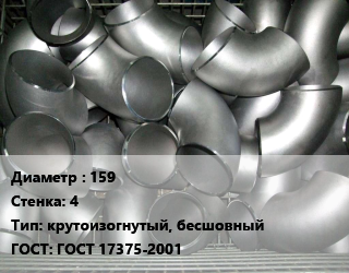 Отвод оцинкованный 159х4 крутоизогнутый, бесшовный ГОСТ: ГОСТ 17375-2001