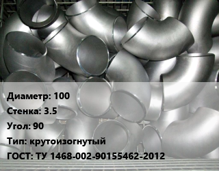 Отвод оцинкованный 100х3.5 Угол:90 крутоизогнутый ГОСТ: ТУ 1468-002-90155462-2012, шт цена от 339.3 сом / шт, где купить, условия доставки в Бишкеке и Чуйской области