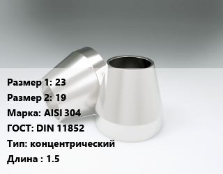 Переход нержавеющий 23х19 Сталь: AISI 304 ГОСТ: DIN 11852 концентрический L=1.5