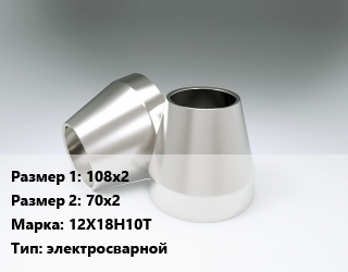 Переход нержавеющий 108х2х70х2 Сталь: 12Х18Н10Т электросварной