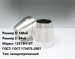 Переход нержавеющий 108х6х89х6 Сталь: 12Х18Н10Т ГОСТ: ГОСТ 173075-2001 концентрический