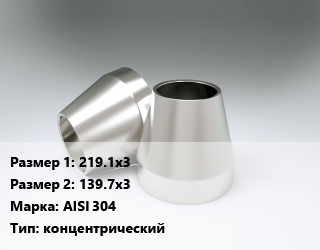 Переход нержавеющий 219.1х3х139.7х3 Сталь: AISI 304 концентрический