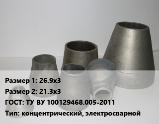 Переход стальной 26.9х3х21.3х3 ГОСТ: ТУ ВУ 100129468.005-2011 концентрический, электросварной