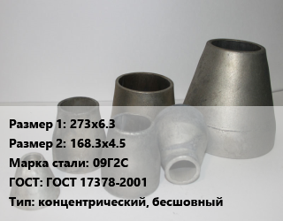 Переход стальной 273х6.3х168.3х4.5 Марка: 09Г2С ГОСТ: ГОСТ 17378-2001 концентрический, бесшовный