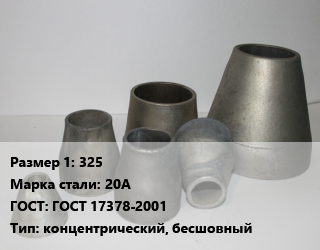 Переход стальной 325 Марка: 20А ГОСТ: ГОСТ 17378-2001 концентрический, бесшовный