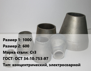 Переход стальной 1000х600 Марка: Ст3 ГОСТ: ОСТ 34-10-753-97 концентрический, электросварной