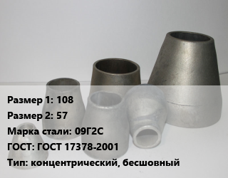 Переход стальной 108х57 Марка: 09Г2С ГОСТ: ГОСТ 17378-2001 концентрический, бесшовный
