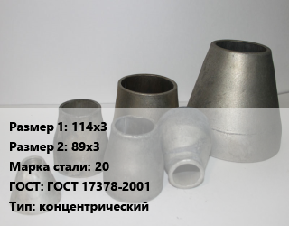 Переход стальной 114х3х89х3 Марка: 20 ГОСТ: ГОСТ 17378-2001 концентрический