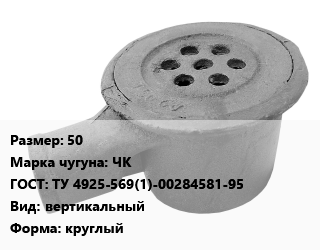 Трап чугунный 50 Марка: ЧК ГОСТ: ТУ 4925-569(1)-00284581-95 вертикальный круглый