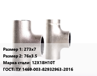 Тройник нержавеющий 273х7х76х3.5 Сталь: 12Х18Н10Т ГОСТ: ТУ 1469-003-82932963-2016