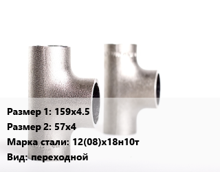 Тройник нержавеющий 159х4.5х57х4 Сталь: 12(08)х18н10т переходной