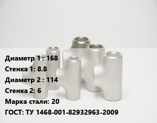 Тройник стальной 168х8.8 -114х6 Сталь: 20 ГОСТ: ТУ 1468-001-82932963-2009