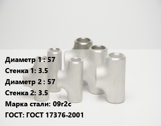 Тройник стальной 57х3.5 -57х3.5 Сталь: 09г2с ГОСТ: ГОСТ 17376-2001