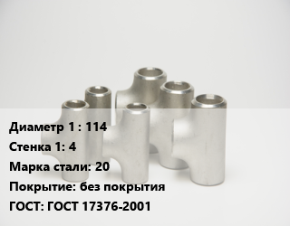 Тройник стальной 114х4 Сталь: 20 без покрытия ГОСТ: ГОСТ 17376-2001
