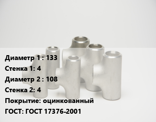 Тройник стальной 133х4 -108х4 оцинкованный ГОСТ: ГОСТ 17376-2001
