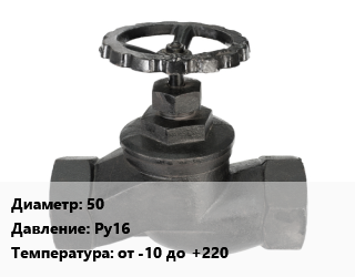 Вентиль чугунный - клапан запорный 50 Ру16 от -10 до +220