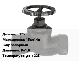 Вентиль чугунный - клапан запорный 125 15кч14п запорный Ру16 до +225