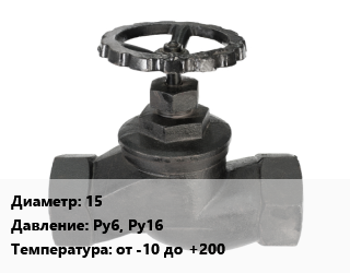 Вентиль чугунный - клапан запорный 15 Ру6, Ру16 от -10 до +200