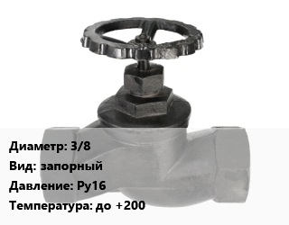 Вентиль чугунный - клапан запорный 3/8 запорный Ру16 до +200