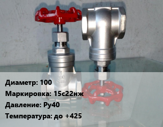 Вентиль нержавеющий - клапан запорный 100 15с22нж P=Ру40 t=до +425