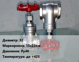 Вентиль нержавеющий - клапан запорный 32 15с22нж P=Ру40 t=до +425