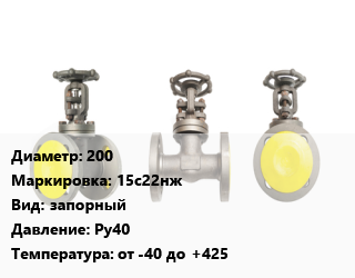 Вентиль стальной - клапан запорный 200 15с22нж запорный Ру40 от -40 до +425