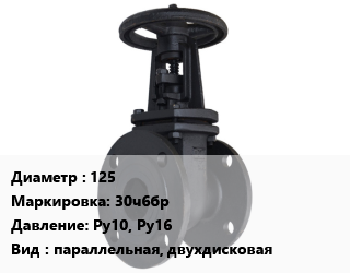 Задвижка чугунная 125 30ч6бр Ру10, Ру16 параллельная, двухдисковая