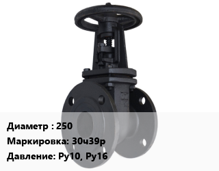 Задвижка чугунная 250 30ч39р Ру10, Ру16