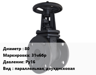 Задвижка чугунная 80 31ч6бр Ру16 параллельная, двухдисковая